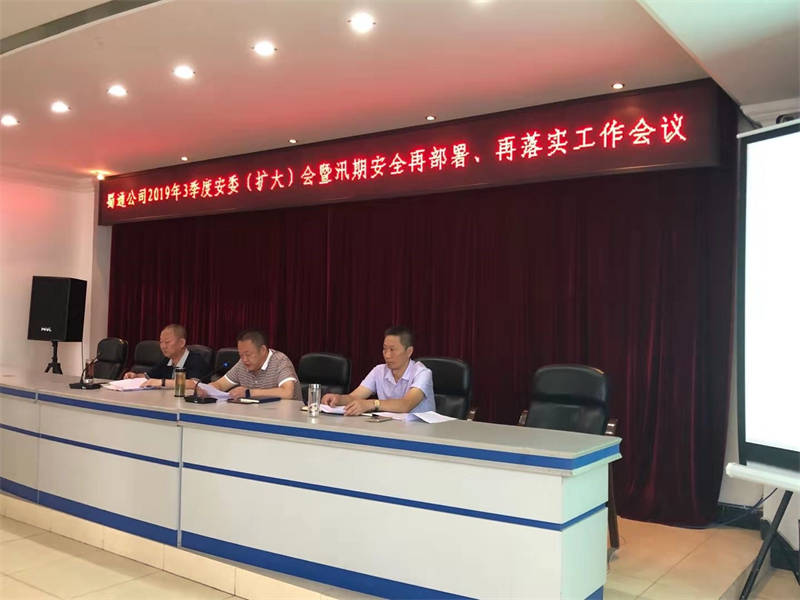 2019年7月23日,蜀通公司黨委副書記、總經(jīng)理、安委會主任余輝在公司機關(guān)會議室主持召開了2019年三季度安委(擴大)會暨汛期安全工作再部署、再落實工作會議。公司安委會成員及各基層安全二、三責任人共計40人參加此次會議。
