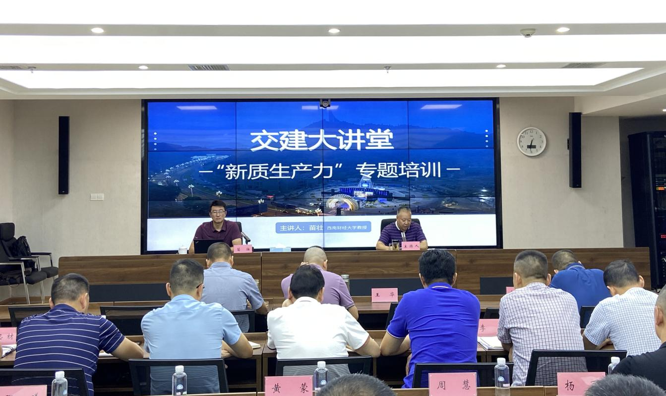 此次專題培訓(xùn)邀請西南財經(jīng)大學(xué)經(jīng)濟學(xué)院教授、博士生導(dǎo)師苗壯同志授課,集團領(lǐng)導(dǎo)班子及中層以上干部參訓(xùn)。苗教授從新質(zhì)生產(chǎn)力的的提出背景入手,全面系統(tǒng)闡釋了新質(zhì)生產(chǎn)力的重大意義、豐富內(nèi)涵和發(fā)展趨勢,并結(jié)合交通領(lǐng)域的傳統(tǒng)產(chǎn)業(yè)、新興產(chǎn)業(yè)和未來產(chǎn)業(yè),從智改數(shù)轉(zhuǎn)賦能、綠色發(fā)展共享等領(lǐng)域進行了詳盡闡釋。專家的整場輔導(dǎo)站位高遠、視野寬廣、內(nèi)涵豐富,既有宏觀政策指引,也有實操借鑒經(jīng)驗,讓參訓(xùn)干部受益良多。
