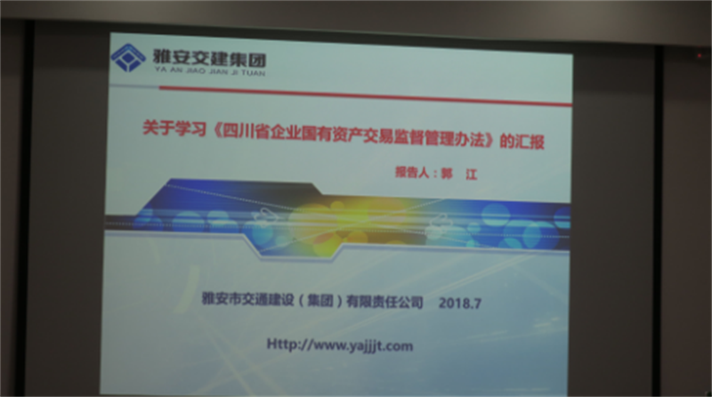7月23日上午,雅安交建集團在四樓會議室召開“依法治企”專題學習會,會議傳達學習了《蘭開馳同志在全市生態(tài)環(huán)境保護大會上的講話》、《四川省國有資產(chǎn)交易監(jiān)督管理辦法》。