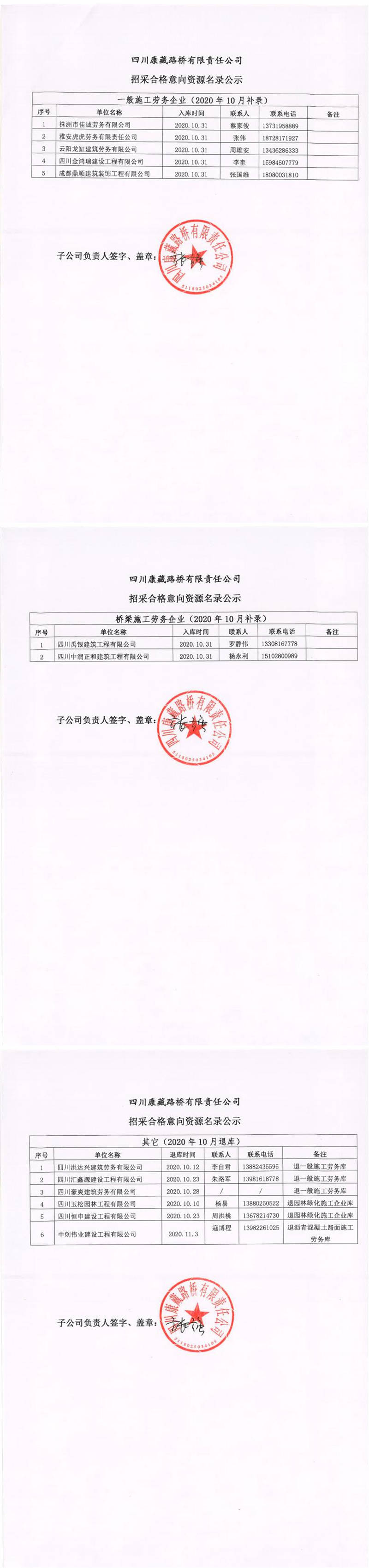 四川康藏路橋有限責任公司招采合格意向資源名錄公示