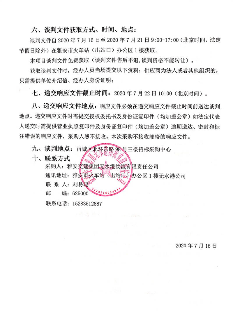 雅安交建集團(tuán)無水港物流有限責(zé)任公司雅安市鳳鳴綜合物流園項目戶外廣告牌制作安裝施工項目(第二次)競爭性談判公告