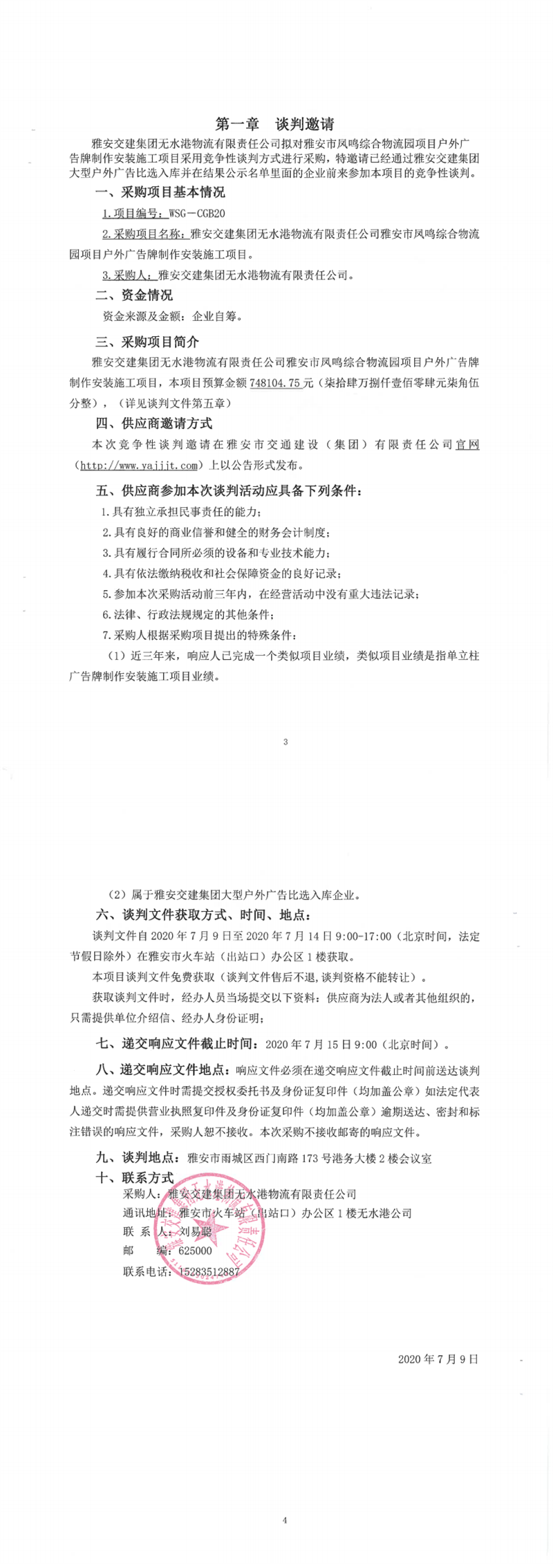 雅安交建集團(tuán)無水港物流有限責(zé)任公司雅安市鳳鳴綜合物流園項(xiàng)目戶外廣告牌制作安裝施工項(xiàng)目競爭性談判公告