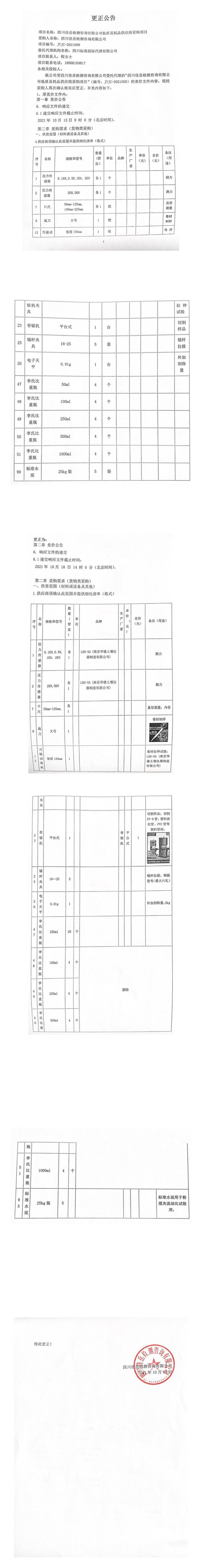 四川佳岳檢測咨詢有限公司低質易耗品供應商采購項目更正公告