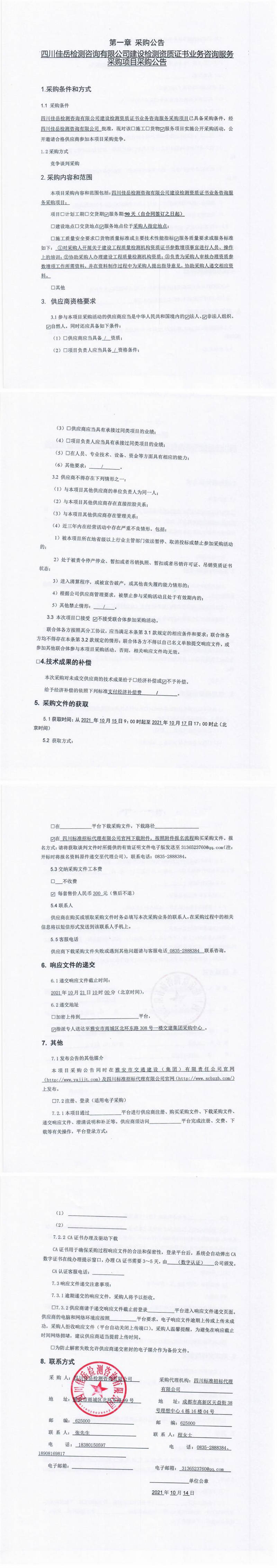 四川佳岳檢測咨詢有限公司建設(shè)檢測資質(zhì)證書業(yè)務(wù)咨詢服務(wù)采購項目采購公告