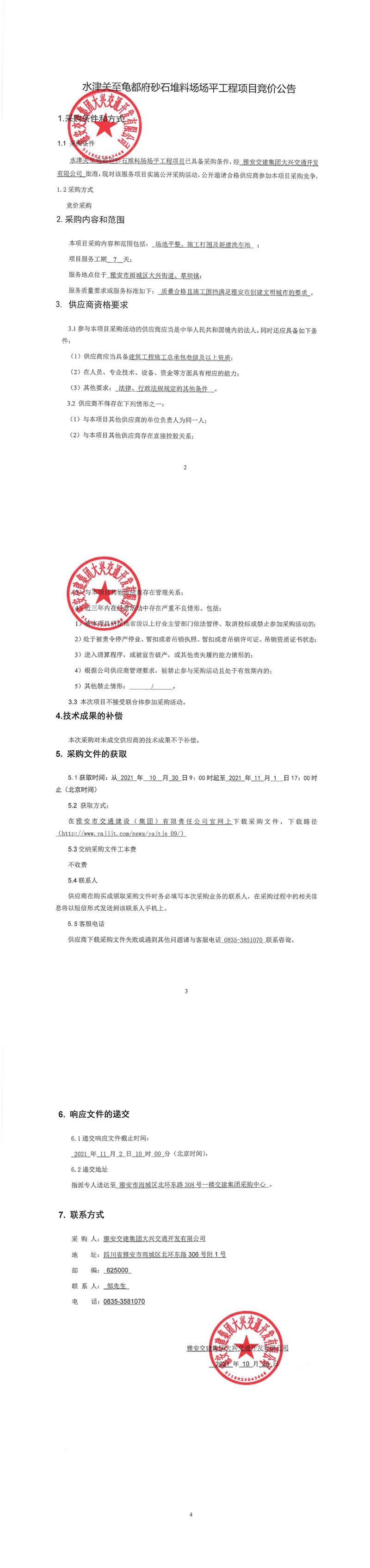 雅安交建集團(tuán)大興交通開發(fā)有限公司水津關(guān)至龜都府砂石堆料場場平工程項(xiàng)目競價公告