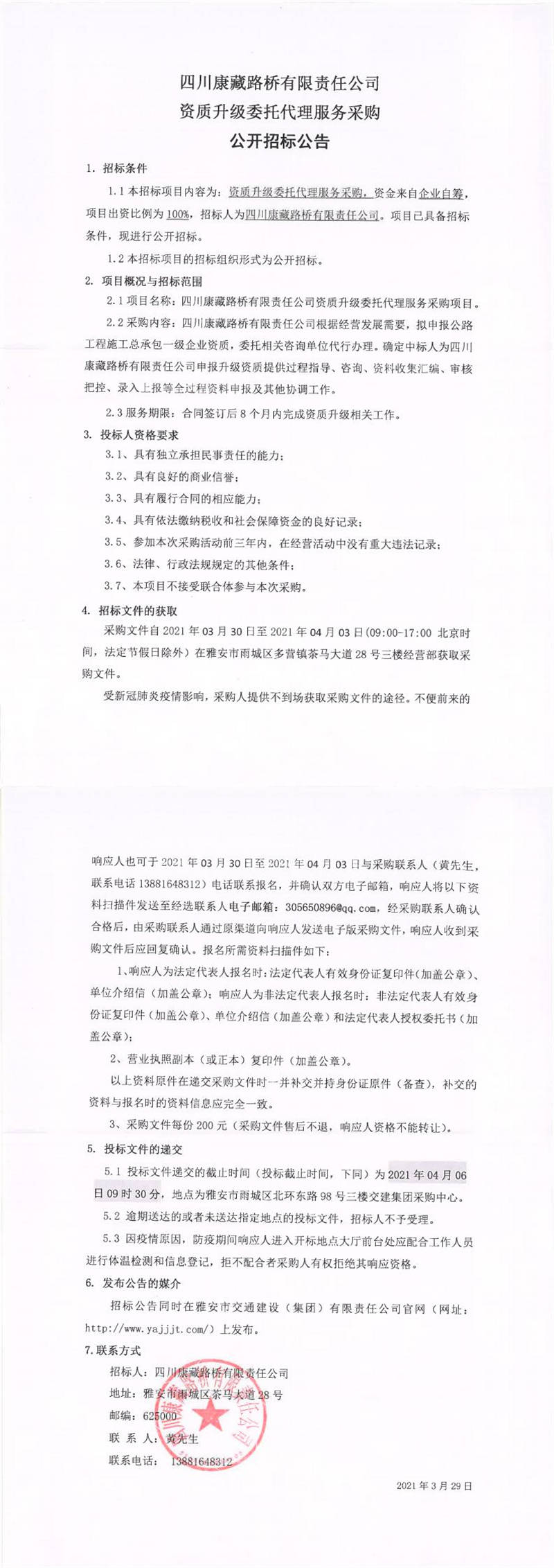 四川康藏路橋有限責(zé)任公司資質(zhì)升級(jí)委托代理服務(wù)采購(gòu)公開(kāi)招標(biāo)公告