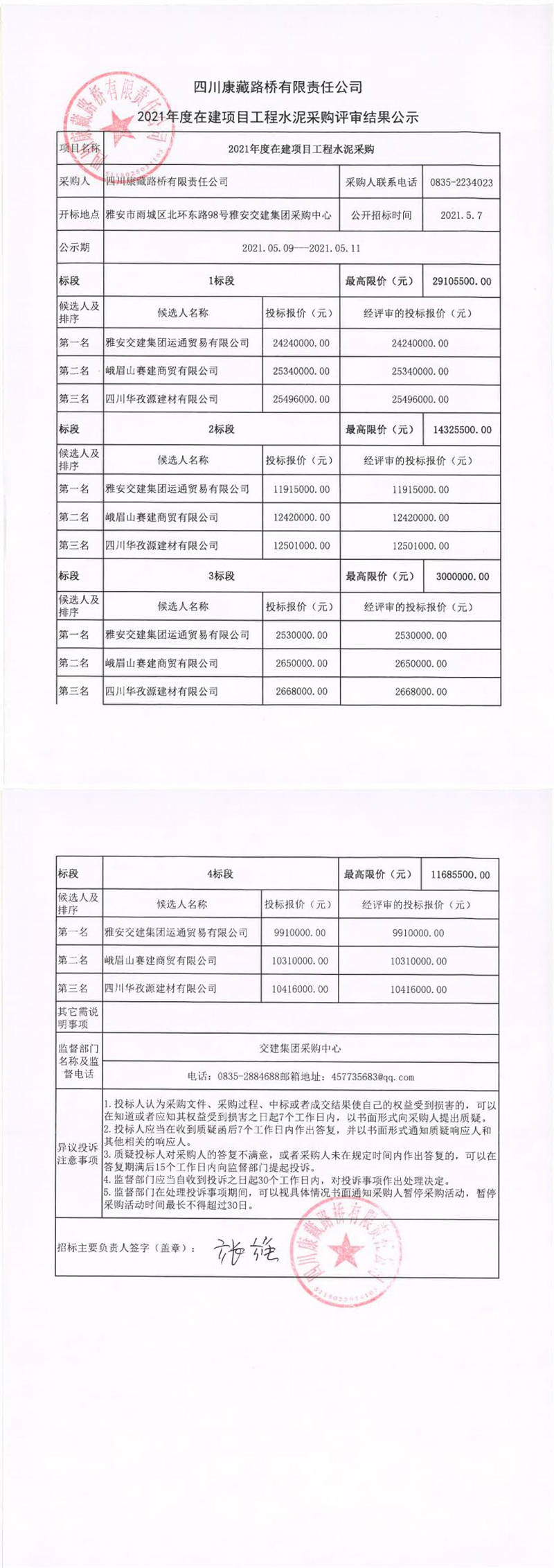 四川康藏路橋有限責(zé)任公司2021年度在建項(xiàng)目工程水泥采購評審結(jié)果公示