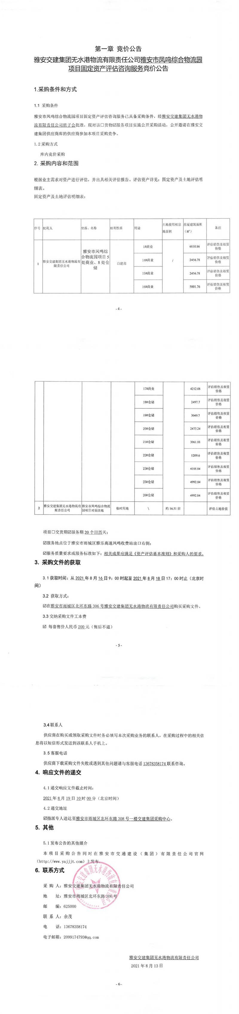 雅安交建集團無水港物流有限責任公司雅安市鳳鳴綜合物流園項目固定資產(chǎn)評估咨詢服務(wù)競價公告