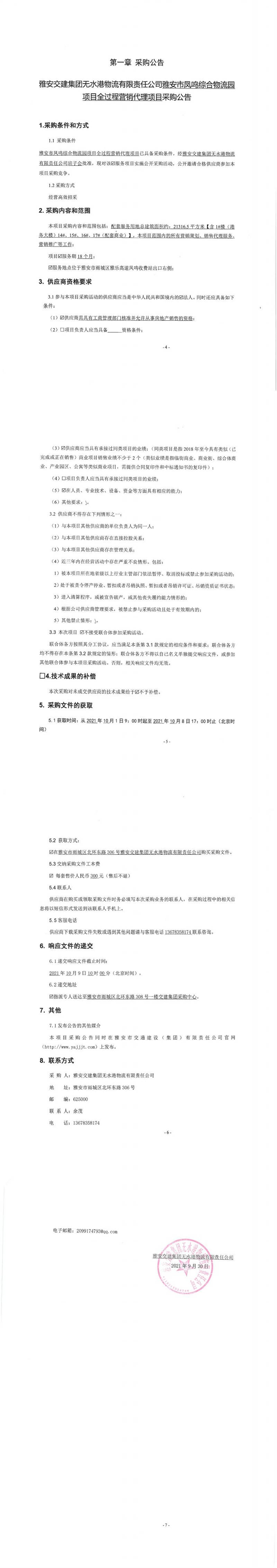 雅安交建集團無水港物流有限責任公司雅安市鳳鳴綜合物流園項目全過程營銷代理項目采購公告