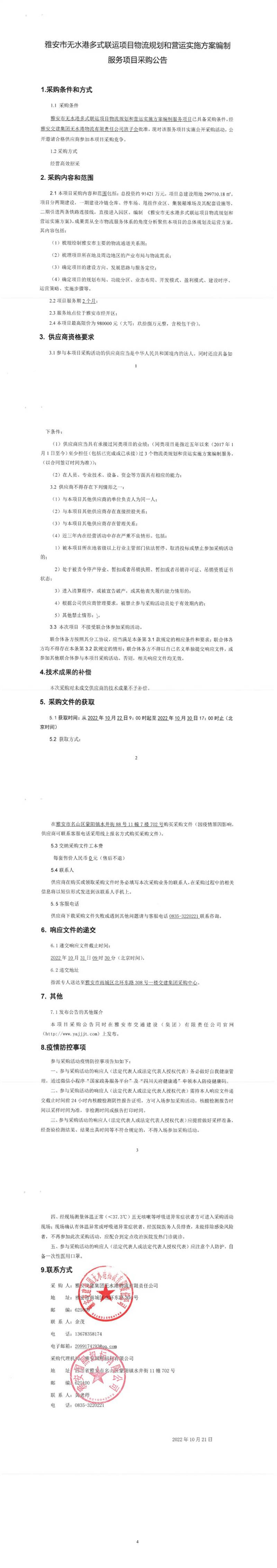 雅安交建集團無水港物流有限責任公司雅安市無水港多式聯(lián)運項目物流規(guī)劃和營運實施方案編制服務項目采購公告