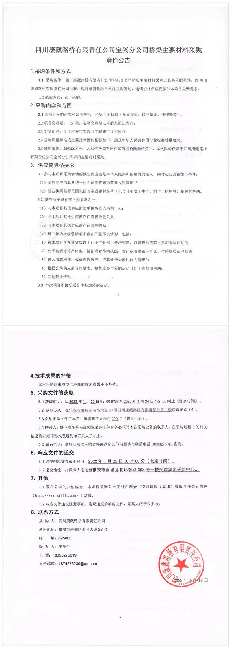 四川康藏路橋有限責(zé)任公司寶興分公司橋梁主要材料采購競價公告