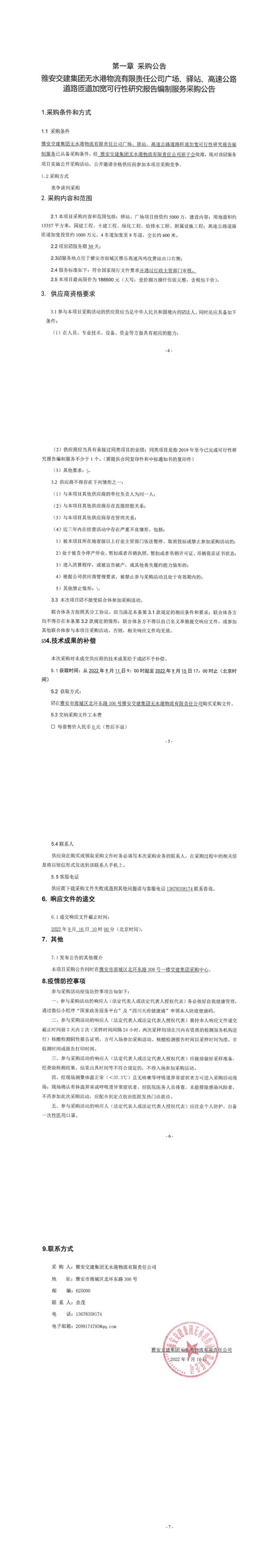雅安交建集團無水港物流有限責任公司廣場、驛站、高速公路道路匝道加寬可行性研究報告編制服務(wù)采購公告