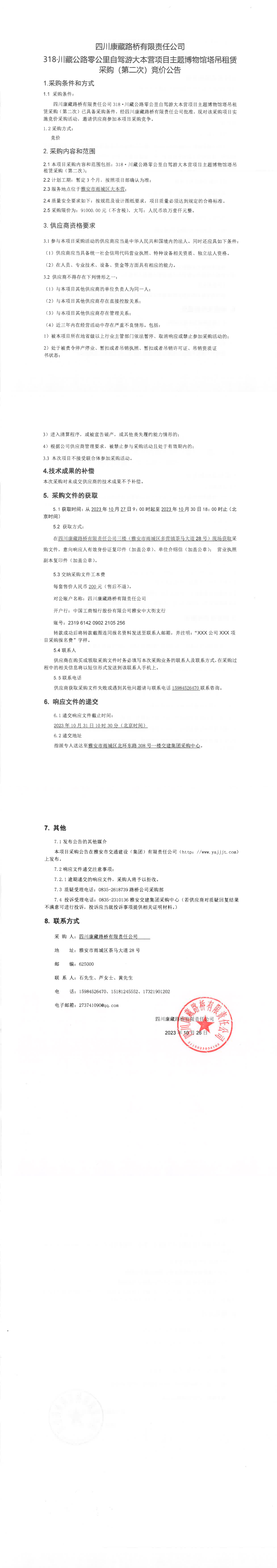 四川康藏路橋有限責(zé)任公司318·川藏公路零公里自駕游大本營項(xiàng)目主題博物館塔吊租賃(第二次)采購競價公告
