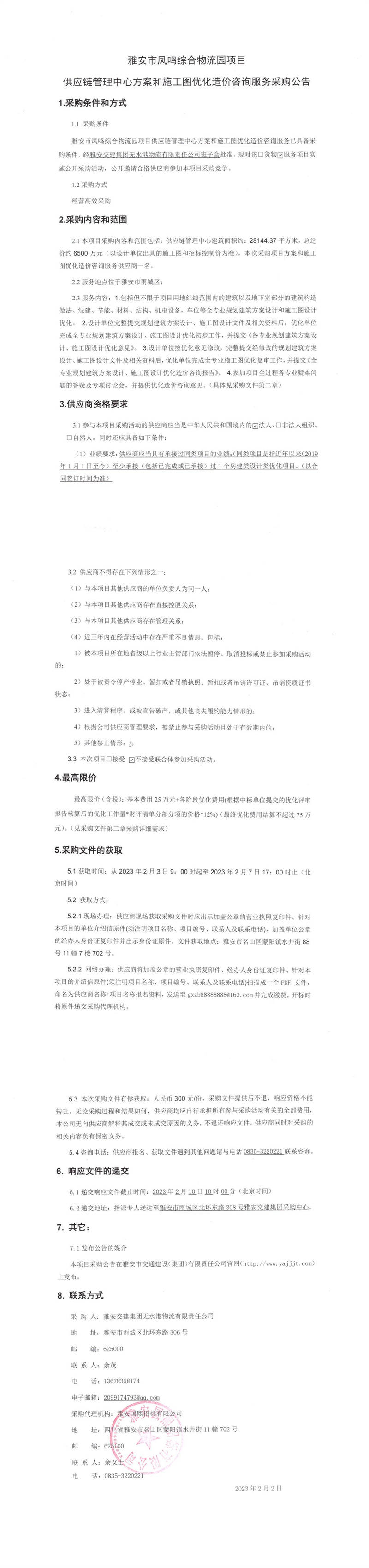 雅安交建集團無水港物流有限責(zé)任公司雅安市鳳鳴綜合物流園項目供應(yīng)鏈管理中心方案和施工圖優(yōu)化造價咨詢服務(wù)采購公告