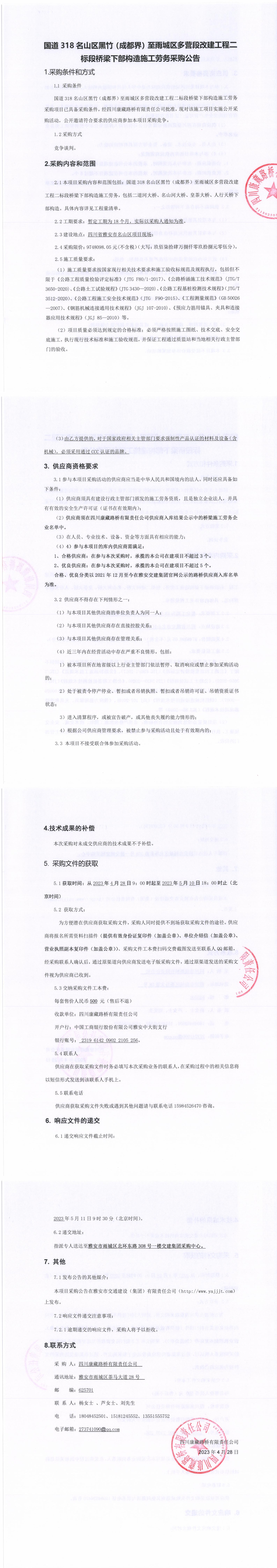四川康藏路橋有限責(zé)任公司國(guó)道318名山區(qū)黑竹(成都界)至雨城區(qū)多營(yíng)段改建工程一標(biāo)段橋梁施工勞務(wù)采購公告