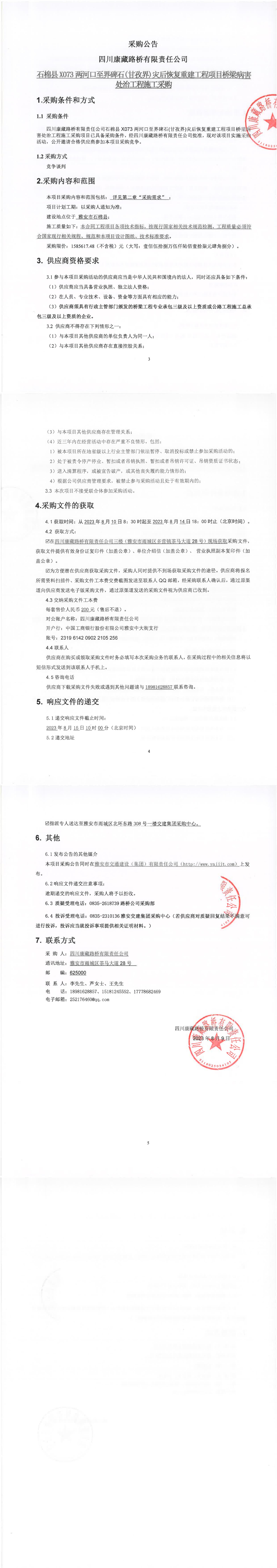四川康藏路橋有限責(zé)任公司國(guó)道318名山區(qū)黑竹(成都界)至雨城區(qū)多營(yíng)段改建工程一標(biāo)段蓋板采購(gòu)競(jìng)爭(zhēng)談判結(jié)果公示