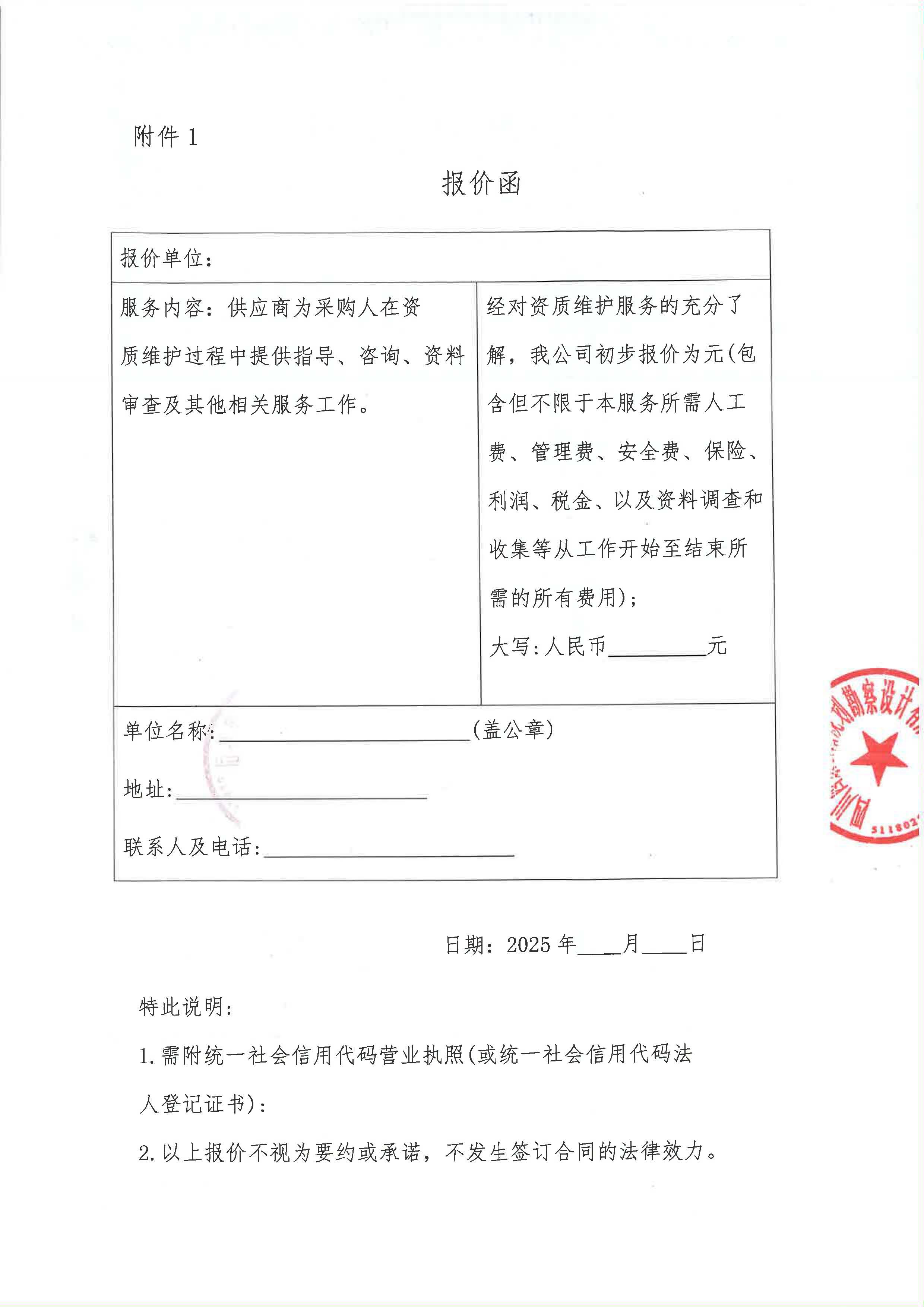 四川西康公路規(guī)劃勘察設(shè)計有限公司資質(zhì)維護服務(wù)采購限價詢價函