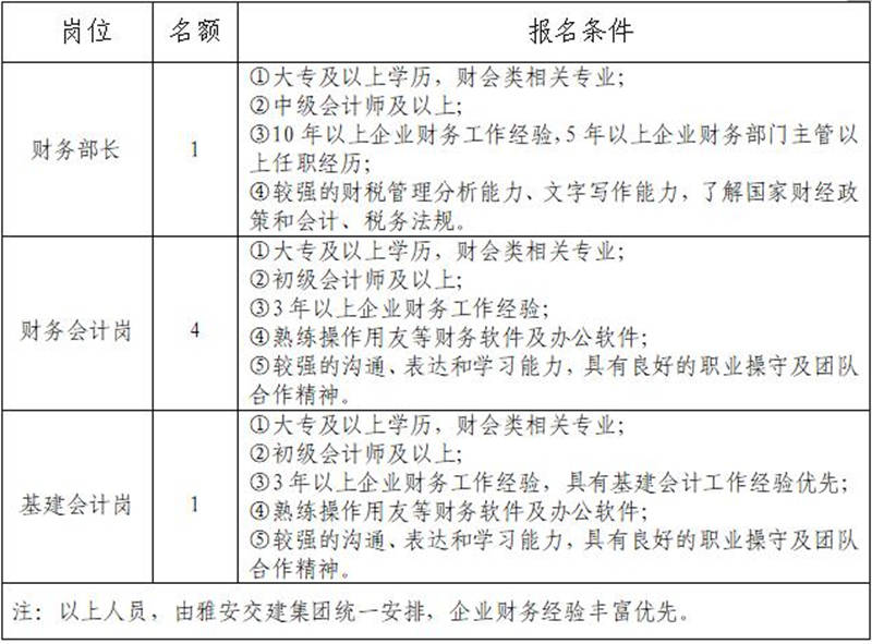 雅安交建集團(tuán)所屬子公司財(cái)務(wù)人員招聘公告