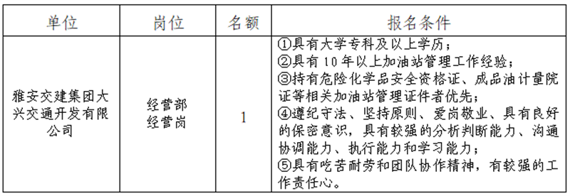 雅安交建集團(tuán)關(guān)于公開招聘所屬子公司工作人員的公告(大興開發(fā)公司)