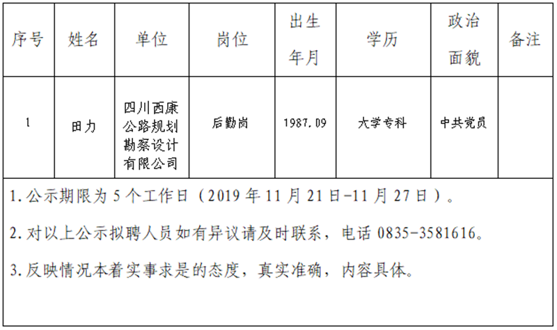 根據集團公司《人才選聘實施辦法》,經研究,對以下擬聘用人員予以公示: