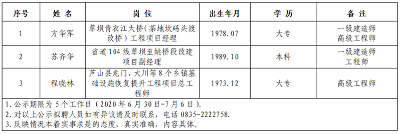 根據(jù)四川康藏路橋有限責(zé)任公司考察聘任專業(yè)技術(shù)人才實施方案,經(jīng)公司研究,現(xiàn)將以下擬聘用人員予以公示: