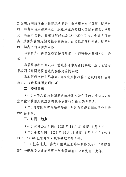 雅安交建資產(chǎn)經(jīng)營管理有限公司雨名快速通道黑碾子場地招租公告