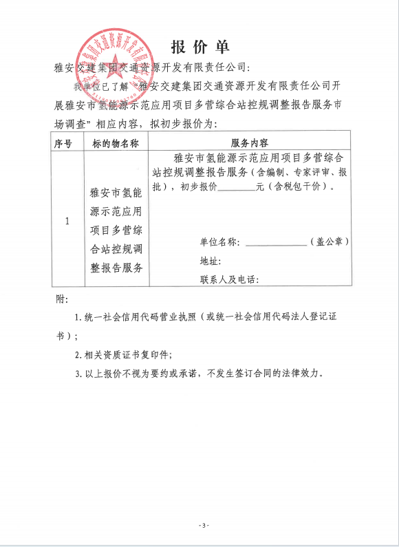 雅安交建集團(tuán)交通資源開發(fā)有限責(zé)任公司雅安市氫能源示范應(yīng)用項(xiàng)目多營綜合站控規(guī)調(diào)整報告服務(wù)市場調(diào)查公告