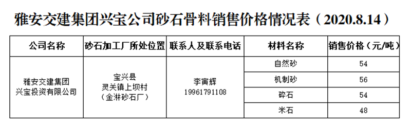 ÑŰ²½»½¨¼¯ˆF(tu¨¢n)ÅdŒš¹«Ë¾É°Ê¯¹ÇÁÏäNÊÛƒr(ji¨¤)¸ñÇé›r±í£¨2020.8.14£©